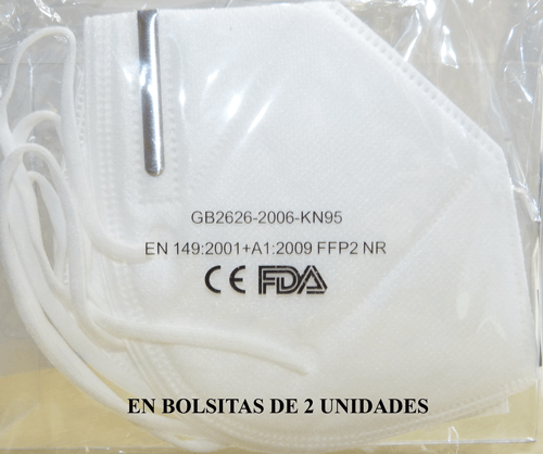 - Mascarilla higiénica desechable FFP2-KN95, certificada de acuerdo con el STANDARD GB2626-2006 (equivalente a la norma UNE-EN 149:2001 + A1:2009).